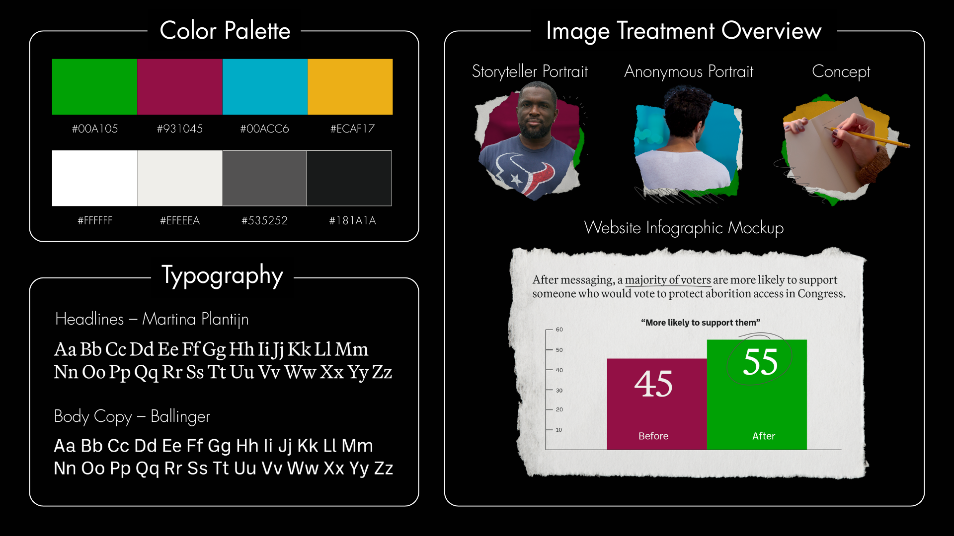 This branding aimed to set the work apart within the abortion rights advocacy space by creating a unique visual identity for the report materials, while maintaining consistency with the broader Abortion in America brand system.