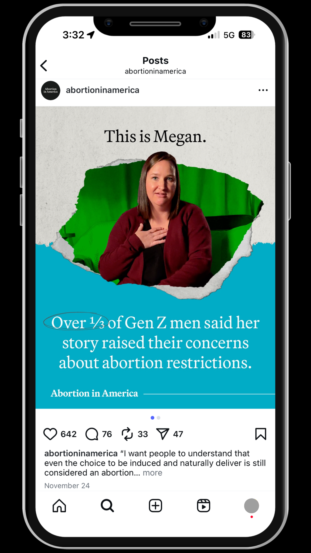 Social posts were created for the Abortion in America channels as well partner toolkits.