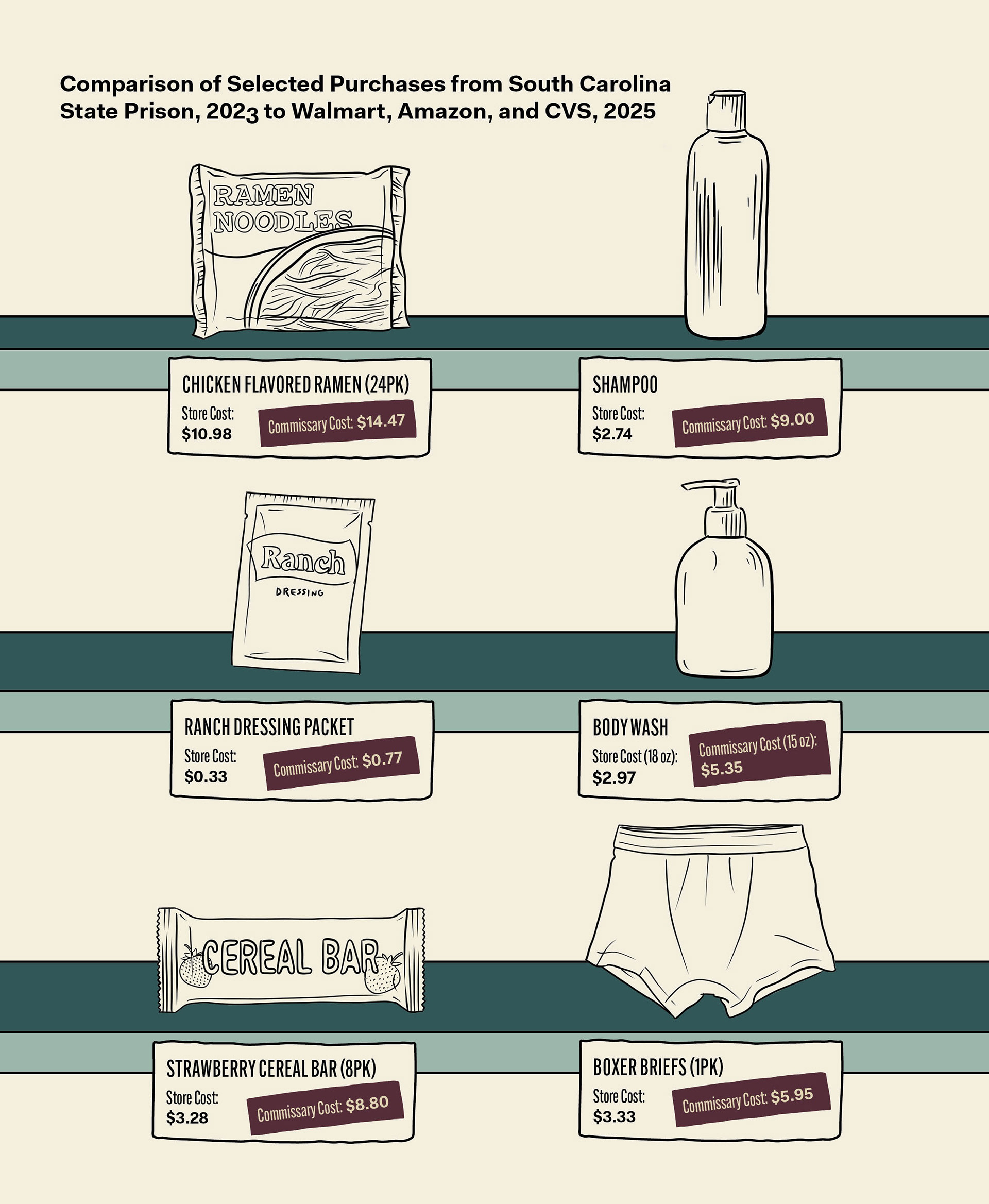 To illustrate the everyday impact of mass incarceration, I combined documentary-style photos with hand-drawn objects symbolizing absence or something changed in affected families’ lives.